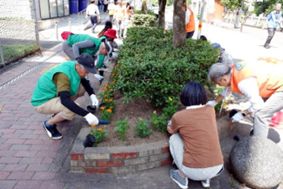 今回の参加者は40名(NTT高知支店長及びNTT社員23名、高知電友会からは17名)で高知市みどり課が準備された600ポットの花の苗を植え付けました。