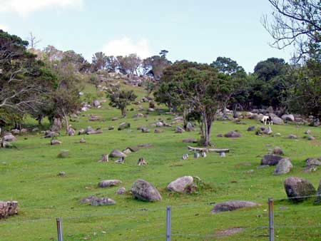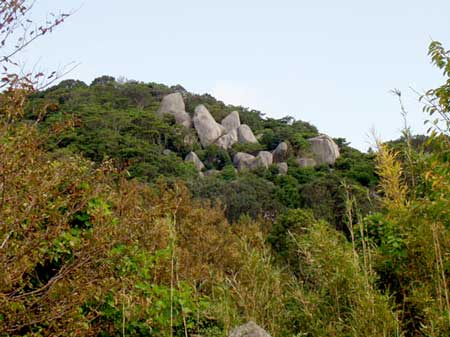 ●山の中腹にある石群は、縄文時代の海洋民族の灯台だったのではないかと言われています。 |