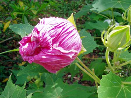 咲き始めは白い花が時間がたつにつれ、酒に酔って顔が赤くなっていくのに例えて「スイフヨウ」の名がついた。