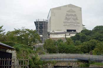 改修工事中のためご覧のような覆いだけの姫路城を見てまいりました。
