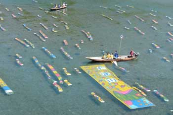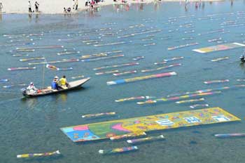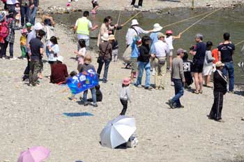 今年はお天気に恵まれて大勢の人が繰り出し、写真撮ったり、川舟体験・こいのぼり釣りなどに興じていました。