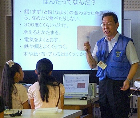 推進員は電波適正利用推進協議会に組織化されており、田中さんは高知県の会長を務めています。その活動の一環として先日は、南国市教育研究所や高知東工業高校の協力も得て準備し、小中学生対象の電波教室を開きました。 当日は南国市各校から24名の小中学生が参加、組み立て補助員として東工業高の生徒達6名にも加わり、電波とは?ラジオはどのように聞こえるか?ハンダゴテの使い方等を事前学習後に、実際にラジオの組み立てに入りました。
